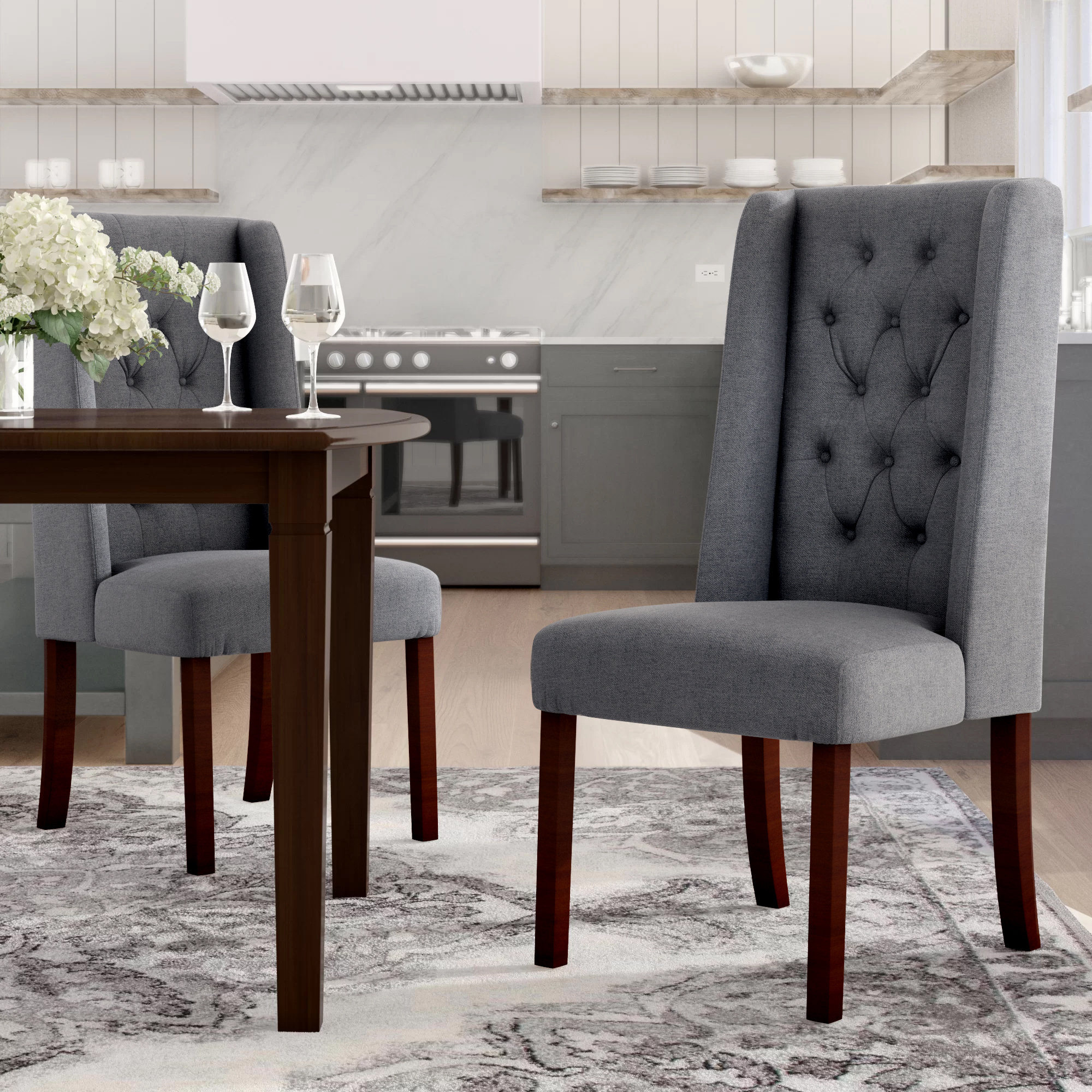The perfect dining chairs will add a stylish touch to your dining room or living space. Richland curved back tufted gray dining chair. Whether drawn up to your dining table or rounding out your living room with an extra seat. Set of 2 dining chairs is suitable for everyday use or as occasional seating. All dining room & kitchen bar & counter stools buffets & sideboards dining room chairs & benches dining room sets dining room tables.