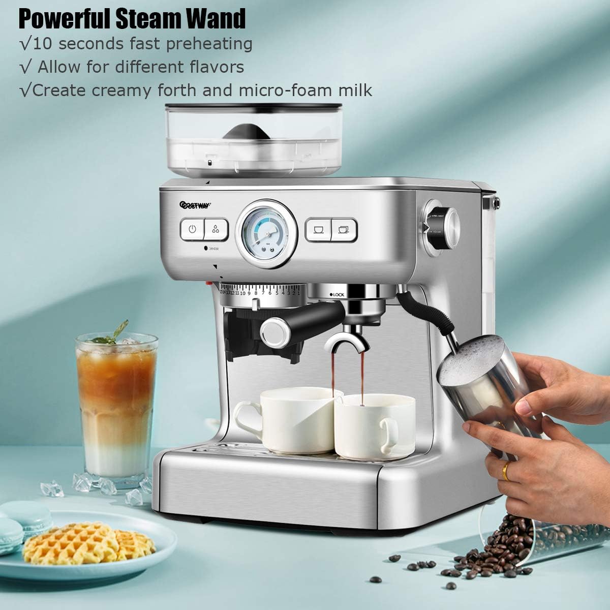 Coffee Maker With Built In Grinder And Frother : Barsetto 15bar Expresso Coffee Machine Built In Milk Frother Grinder Coffee Makers 1450w Semi Automatic Coffee Machine Coffeeatticclub / It's programmable, compact, and has a burr grinder instead of a cheaper blade grinder.