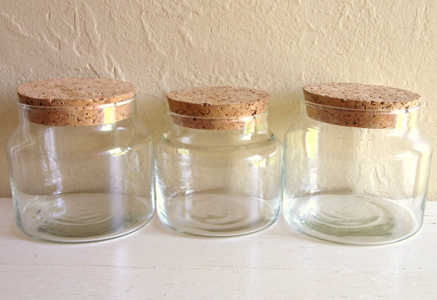 Glass Apothecary Jars With Cork Lids / 2 Vintage Apothecary Jars with Cork Lids - Glass apothecary jar set of 3 candy buffet jar with lids decorative wedding centerpiece, bathroom organizer canister.. 5 out of 5 stars. As low as $6.14 each. There are chips to the rim of the jar, and chips to the neck of the lid. Anchor hocking glass apothecary jar no lid 4 inches lot of 2. If you're planning a party and need something more elevated for your party favors, these chic apothecary jars with cork lids will be sure to impress your guests.