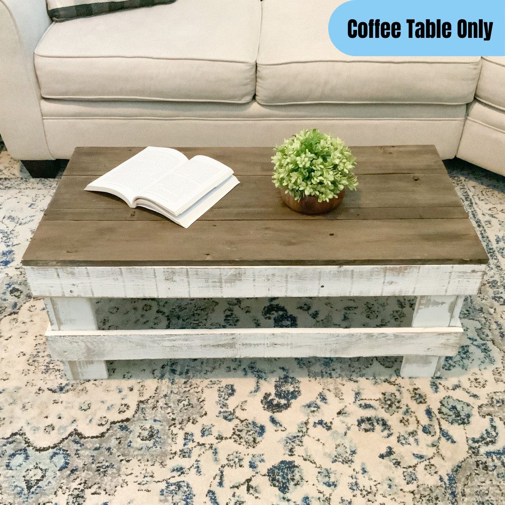 Made of veneers, wood and engineered wood. Comes with farmhouse style legs. White reclaimed wood coffee table $ 0.00. Keep your living room decor charming and elegant with the. From rustic coffee tables to modern coffee tables, you'll find what you love!